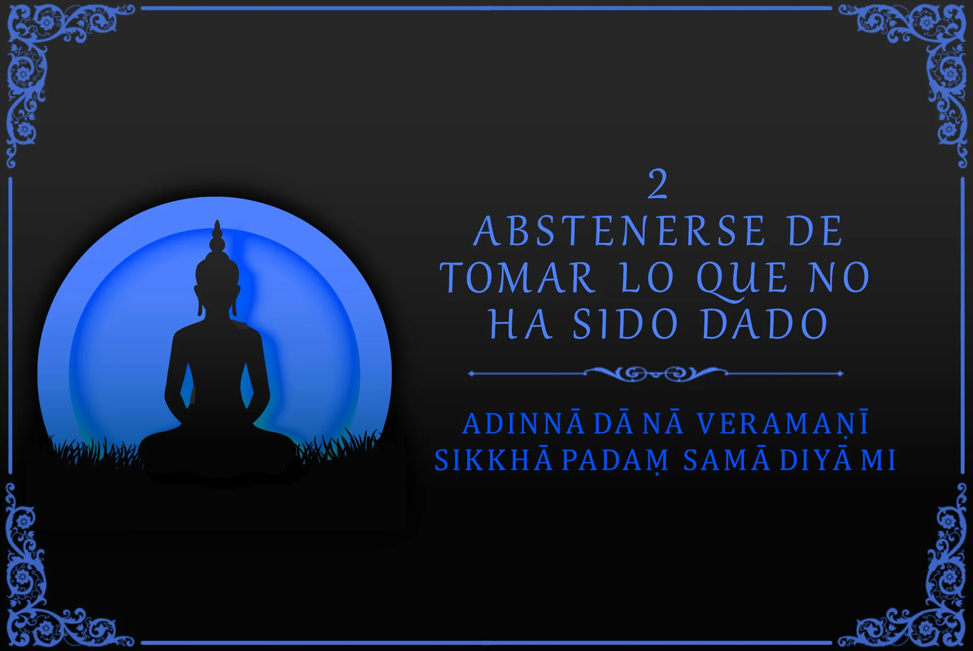 - Abstenerse de tomar lo que no ha sido dado (adinnādānā veramaṇī sikkhāpadaṃ samādiyāmi)