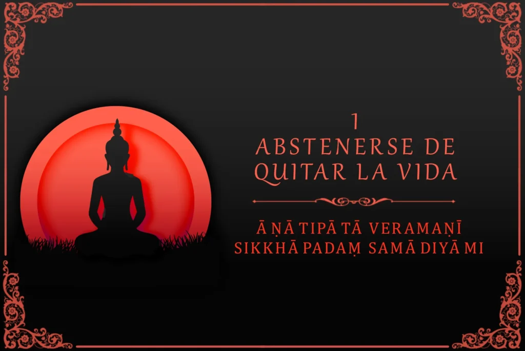 - Abstenerse de matar seres vivos (pāṇātipātā veramaṇī sikkhāpadaṃ samādiyāmi)