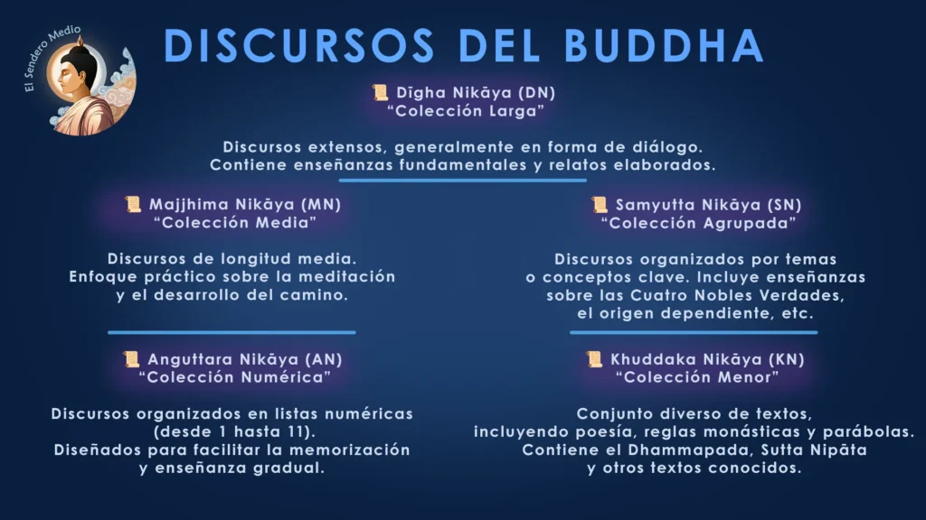¿Cómo se si lo que estoy leyendo es de un discurso de Buddha? Cuando nuestros textos finalizan con estas abreviaciones: Dn, Mn, Sn, An, Kn, más su correspondiente numeración, quiere decir que pertenece a una de las cinco colecciones de los discursos de Buddha, por lo tanto pertencen al Canon Budista. Por lo general las……