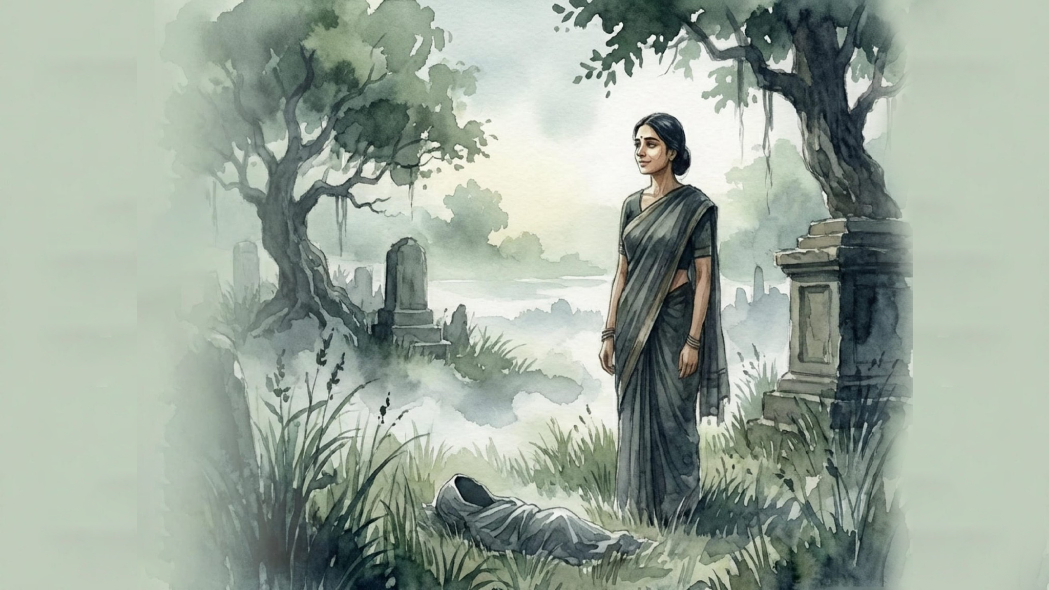 Ella desarrolló una urgencia espiritual y fue a los terrenos de cremación. Tomó a su hijo con su mano y le habló por última vez.