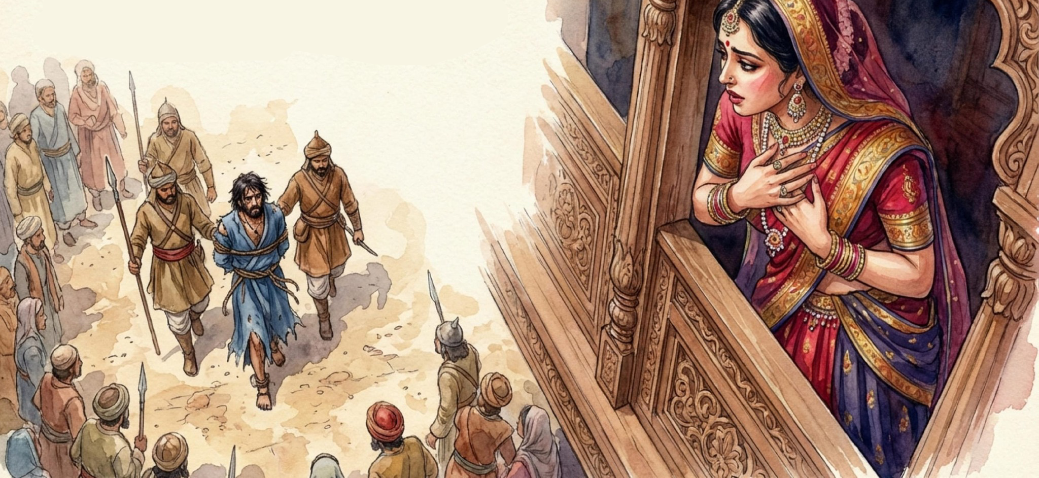 Finalmente capturado, Sattuka fue sentenciado a muerte en la puerta sur. Bhaddā, mirando desde su ventana, vio al ladrón siendo llevado a su ejecución. El enamoramiento la golpeó instantáneamente. Ella dijo a sus padres: «Si lo consigo, viviré; si no, moriré». Desesperado, su padre sobornó a los oficiales con mil monedas. Sattuka fue liberado y otro hombre fue ejecutado en su lugar.